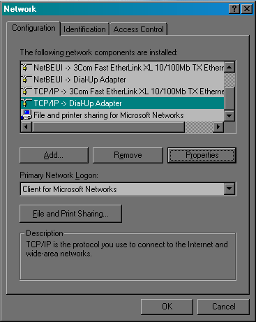 Daca ati repornit windowsul, redeschideti Control Panel si dati dublu clik pe Network apoi selectati TCP/IP - Dial Up Adapter si apasati butonul Properties si selectati Obtain an IP Address Automatically.