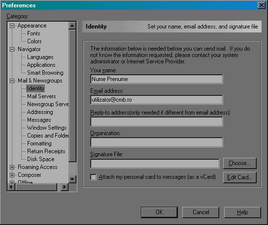 Acest document contine instructiuni de configurare a programului Netscape Navigator din pachetul Netscape Communicator.