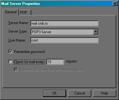 Solutie: Verificati conexiunea cu serverul CMB. Verificati setarile programului cu care va luati posta electronica.