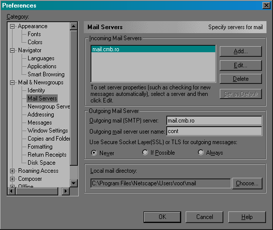 Pentru inceput, porniti programul Netscape Navigator aflat in meniul Start->Programs->Netscape Communicator, intrati in meniul Edit si alegeti optiunea Preferences.