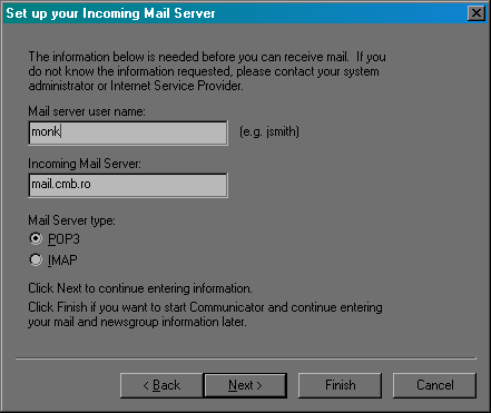 Dupa ce ati completat campurile din fereastra de mai sus, apasati pe butonul Next, iar in fereastra urmatoare, apasati din nou pe Next. Va aparea o fereastra ale caror campuri se completeaza ca mai jos.