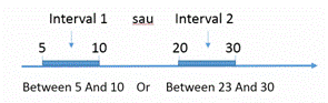 Produse cu prețul cuprins intre 5 și 10 RON sau 20 și 30 RON. Explicație: aici avem doua intervale, iar prețul produsului trebuie sa se situeze in primul SAU al doile interval. Deci, la Pret vom folosi criteriul BETWEEN 5 AND 10, și pe linia or: (imediar sub Criteria) adaugam al doilea interval.