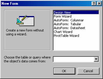 actiune in urma careia se va deschide caseta de dialog New Form.