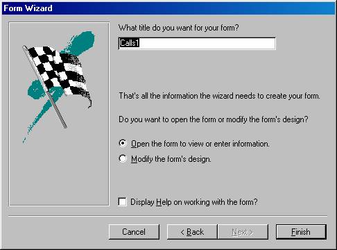 Denumiti formularul si subformularul si executati clic pe butonul Finish.
