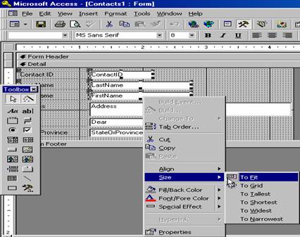 Elementele formularului se pot muta, redimensionare, stergere etc. Abilitatile pe care le-ati dobandit pana in prezent pentru manipularea obiectelor grafice va vor ajuta sa personalizati structura formularului dupa cum doriti.