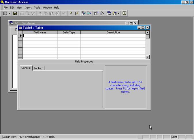 In zona Field Name (Numele campului) se va completa numele campului. In cazul in care se va folosi o prescurtare pentru acest nume, atunci, in zona de proprietati (Field Properties), la optiunea Caption se va scrie numele campului asa cum doriti sa apara in tabelul de introducere a datelor.