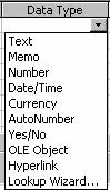 Tipul de data implicit este Text. Pentru a selecta un alt tip se executa clic pe butonul sageata descendenta din coloana Data Type.