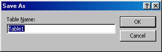 Nota: La parasirea casetei de dialog unde s-a fixat structura tabelei de date, vi se va solicita salvarea tabelei. Introduceti numele tabelei in campul Table Name dupa care executati clic pe butonul OK.