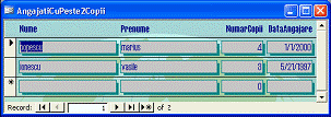 Astfel, daca optam pentru varianta AutoForm: Tabular si alegem ca sursa de date interogarea AngajatiCuPeste2Copii, formularul pe care il vom obtine va fi asemanator cu cel prezentat in figura urmatoare.