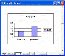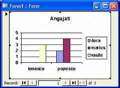 Astfel, in figura de mai sus se prezinta formularul obtinut daca utilizam Chart Wizard pentru a realiza reprezentarea grafica a campului NumarCopii din tabela Angajati.