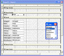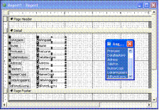 Din fereastra care contine lista campurilor tabelei vom selecta intregul continut dupa care vom trage aceste elemente in cadrul raportului folosind mouse-ul.
