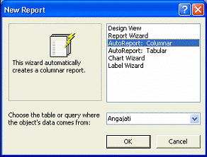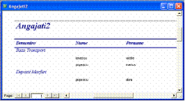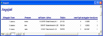 Astfel, daca se alege varianta AutoReport: Columnar si optam pentru tabela Angajati ca sursa de date, atunci vom obtine un raport de forma celui din figura de mai sus.