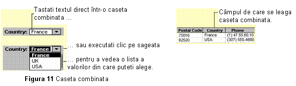 În cele majoritatea cazurilor este mai rapid si mai usor sa selectati o valoare dintr-o lista decât sa memorati valoare de tastat. Puteti realiza acest lucru fara a ocupa prea mult spatiu pe un formular folosind o caseta combinata. Caseta combinata reprezinta o combinare dintre o caseta de text si o caseta cu lista.