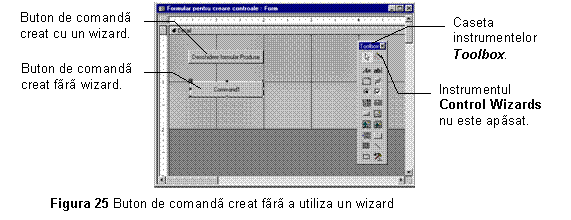 Daca vreti sa folositi un wizard pentru a va ajuta la crearea controlului, atunci asigurati-va ca pe caseta instrumentelor Toolbox este apasat butonul Control Wizards.