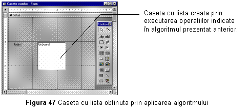 Dupa ce ati executat clic pe butonul Finish, Microsoft Access va crea controlul pe baza indicatiilor pe care le-ati furnizat în casetele de dialog ale wizard-ului (vezi figura 47).