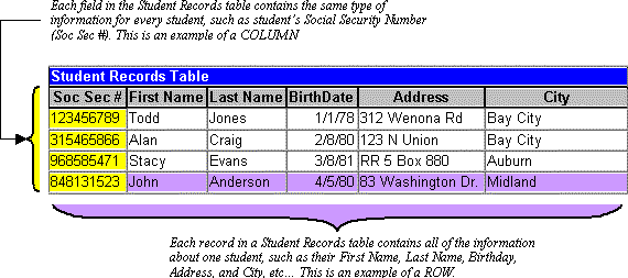 inregistrare dintr-un tabel contine toate informatiile despre un anumit student