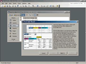 De asemenea, este posibila accesarea surselor de date MS SQL-Server, precum si alte baze de date avand o arhitectura client/server. Pentru gestionarea bazelor de date MS SQL-Server, Access 2003 a inclus o serie de instrumente care simplifica acest proces. In acest sens, a fost integrat un nou instrument (Stored Procedures Designer) care permite crearea vizuala a procedurilor stocate rulabile prin intermediul serverului SQL. Pentru folosirea acestui instrument nu sunt necesare cunostinte in limbajul Transact SQL specific procedurilor stocate, in acest mod si utilizatorii mai putin experimentati pot exploata avantajele arhitecturii client/server in aplicatiile dezvoltate in Access. Suplimentar, noua versiune face posibila crearea de forme si rapoarte care sa utilizeze surse eterogene de date, iar pentru analiza informatiilor din bazele de date au fost aduse imbunatatiri instrumentelor Microsoft Pivot Table si Microsoft Pivot Chart.