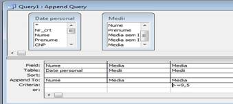 Se utilizeaza in cazul in care este necesara adaugareavunui set de inregistrari dintr-o tabela in alta tabela. Aceasta va selecta datele care tebuie adaugate si le va trimite in campurile tabelei destinatie. Vom descrie in continuare modul de definire a unei interogari de adaugare.
