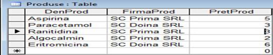 Pentru a afisa doar medicamentele care sunt produse de SC Prima SRL