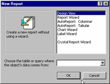 Alegeti optiunea New. Se va deschide caseta de dialog New Report.