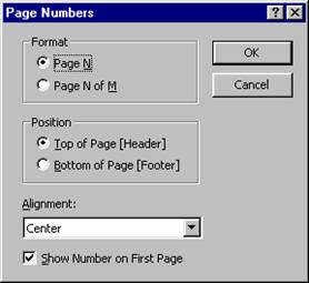 Pentru a modifica formatul numarului de pagina sau pentru a adauga un format pentru numerotarea paginilor, alegeti optiunea Page Number din meniul Insert.