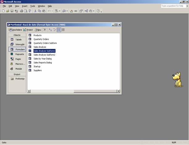 Pentru a deschide un formular, se alege din bara de butoane grupul Forms. În partea dreapta a ferestrei sunt afisate toate formularele existente.
