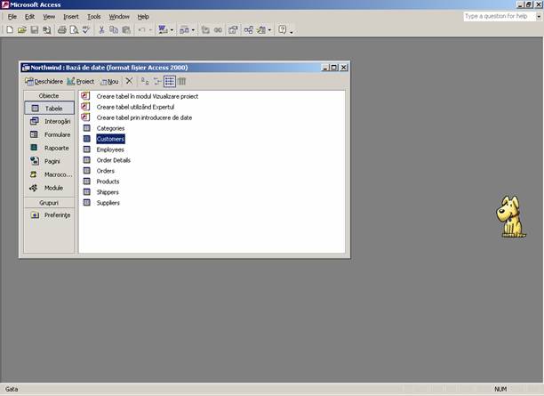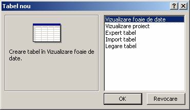 Pentru deschiderea unui tabel existent, acesta este selectat si apoi se executa clic pe butonul Open. Rezultatul acestei actiuni este aparitia tabelului într-o fereastra proprie
