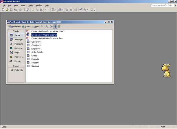 Cu aceasta optiune se porneste un program ajutator care executa serviciile pentru crearea unei baze de date.