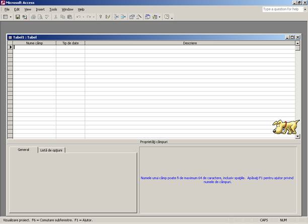 2.3. Programul de asistenta Wizard ajuta specialistul care realizeaza baze de date la alegerea câmpurilor tabelului si ofera o lista cu cele mai frecvente introduceri.