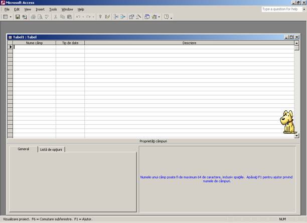 Fiecare baza de date se construieste cu unul sau mai multe tabele, deci primul pas este construirea unui tabel.