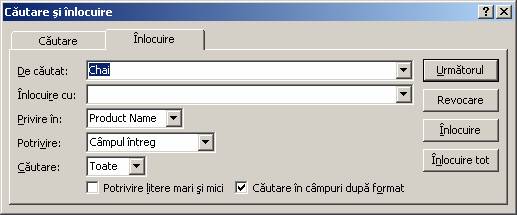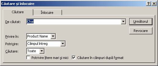 Atentie : Daca, în cadrul optiunii Match, folosim suboptiunea Whole Field, trebuie ca textul din câmpul de cautare sa fie identic cu textul din câmpul din tabel. De obicei este oportuna folosirea optiunii Any part of Field.