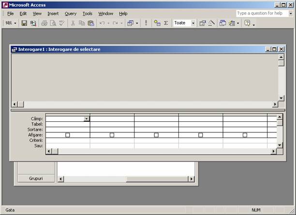 În partea inferioara a ferestrei, sunt listate toate câmpurile care sunt utilizate pentru o interogare (afisate la o interogare) pentru un anumit tabel.