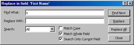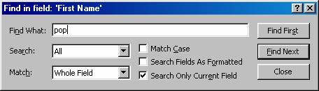 parte a campului sau cu inceputul campului (optiunile Whole Field, Any Part si Start