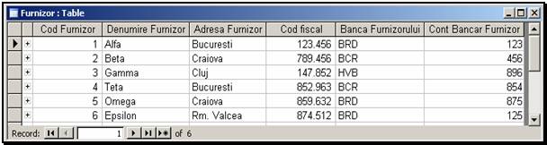 A. Furnizor Cod Furnizor,Denumire Furnizor,Adresa Furnizor, Cod fiscal, Banca Furnizor, Cont bancar Furnizor
