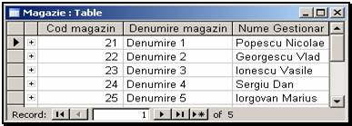 Structura: Pe campul Cod Magazin nu se accepta decat valori cuprinse intre 21 si 30. Mesajul de eroare fiind: "Cod eronat. Tastati codul magaziei intre 21 si 30".