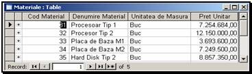 C. Materiale Cod Material, Denumire Material, Unitate de Masura, Pret Unitar