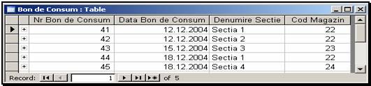 Structura: Pe campul Nr Bon de Consum nu se accepta decat valori cuprinse intre 41 si 50. Mesajul de eroare fiind: "Eroare. Tastati nr bonului de consum intre 41 si 50".