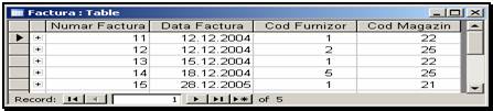 E. Factura Numar Factura, Data Factura, Cod Furnizor, Cod Magazin