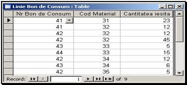 Structura: Campul Nr Bon de Consum (aici cheie externa) va fi o lista derulanta cu valorile campului Nr Bon de Consum din tabela Bon de Consum (acolo cheie primara).