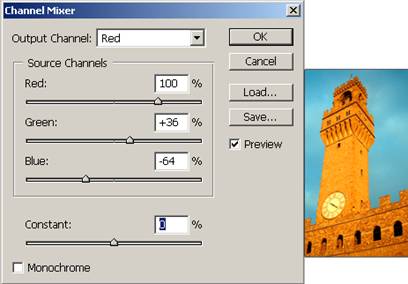 10 Chanel Mixer ofera utilizatorului posibilitatea de a modifica gama cromatica a imaginii. Prin cursoarele pe care le ofera se pot produce modificari importante asupra imaginii, pe fiecare canal de culoare in parte (Output Channel)