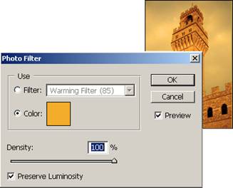 12 Photo Filter adauga o dominanta de culoare in imagine sau da dominanta de culoare in selectie. Utilizatorul are posibilitatea de a alege culoarea, densitatea acesteia si calitatea filtrului. In cazul de fata s-a utilizat un fitru cald.
