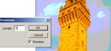 17 Nivelul Posterize care se obtine pe calea Image Adjustments Posterize lucreaza cu niveluri de culoare. Cu cat sunt mai putine niveluri de culoare (2 minim) cu atat sunt mai putine culori. Tonurile de descompunere a culorilor sunt evidente, fara tonuri de trecere. Cu cat tonurile sunt mai putine cu atat trecerile intre culori sunt mai bruste.