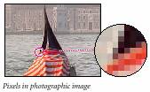 Rezolutie de imagine: numarul de pixeli pe unitatea de masura; de obicei se masoara in pixeli pe inch (ppi). O imagine de rezolutie mare are mai multi pixeli si de aceea dimensiunea fisierului este mai mare decit la o imagine de aceeasi dimensiune dar de o rezolutie mai mica.