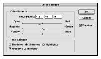Este necesar a apela la un strat de ajustare a balansului / de echilibrare a culorii (Color Balance) pentru a corecta dezechilibrul existent in imaginea fotografica. Un strat de ajustare permite editarea imaginii de atatea ori de cate este nevoie, fara a modifica in mod permanent imaginea originala la nivel de pixel. Acest procedeu este in mod special avantajos pentru imagini care urmeaza a fi tiparite. Dupa ce se obtine fisierul final sau un exemplar tiparit, se mai pot face si alte modificari daca este necesar.