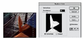 4. In meniu: Image > Adjust > Replace Color pentru a deschide caseta de dialog de inlocuire a culorii. In mod implicit, zona de previzualizare a selectiei afiseaza un dreptunghi negru.