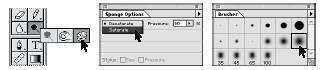 1. }ineti apasat butonul mousului pe instrumentul dodge ( ) si alegeti instrumentul burete.