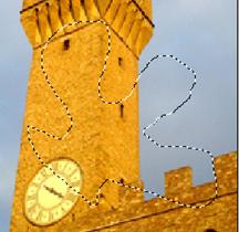 Selectie realizata cu instrumentul Lasso Tool. Selectia este realizata doar din mouce-ul plimbat pe suprafata imaginii si a rezultat o selectie libera. |