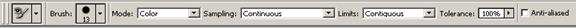 Bara de optiuni pune la dispozitia utilizatorului raza de selectare a culorii in functie de pixeli.