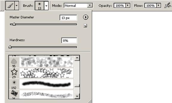 Bara de optiuni a radierei ofera o gama mare de efecte ce pot fi utilizate.