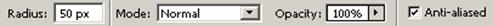 in bara de optiuni posibilitatea de a stabili deschiderea rotunjimii